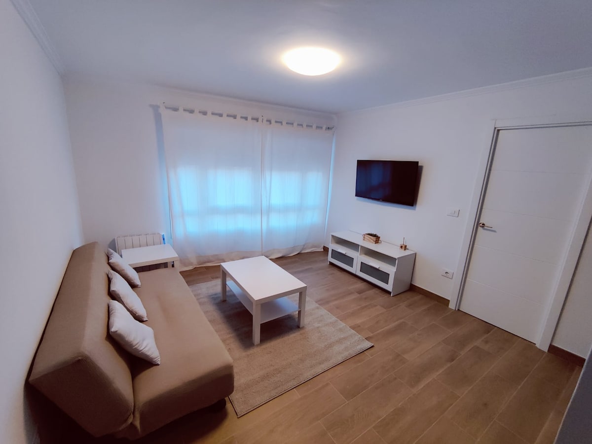 Apartamento de obra nueva en Sanxenxo a escasos 80 m de la Playa de Silgar. Muy luminoso y equipado, dispone de todo lo necesario para su estancia en una de las mejores zonas para pasar sus vacaciones en Galicia. Consta de un amplio salón-comedor con sofá-cama doble, y un rincón donde se encuentra el dormitorio principal (sin separación del salón) La zona es muy tranquila y sin cuestas, también está próximo al paseo.