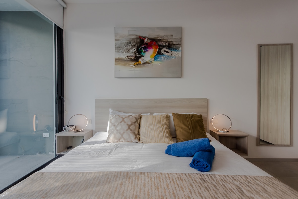 Evadează în acest apartament modern 1BR din inima Playa del Carmen, la doar o scurtă plimbare de plajă și de vibranta 5th Ave. Bucură-te de un pat matrimonial, bucătărie completă, canapea extensibilă și o baie elegantă cu cadă adâncă. Relaxează-te pe acoperiș cu o piscină infinită, jacuzzi, bar și sală de gimnastică. Ideal pentru cupluri, călători solo sau o escapadă elegantă pe plajă. Fie că ești aici pentru a explora, a te relaxa sau a te bucura de soare, acest apartament este refugiul tău perfect pentru Riviera Maya.