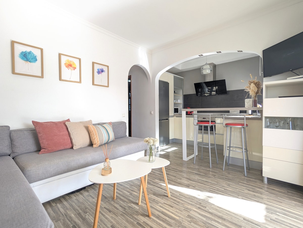 Te presentamos esta acogedora vivienda totalmente equipada. Dispone de una habitación doble, baño y una moderna cocina abierta al salón, esta propiedad es ideal para quienes buscan un espacio funcional y estilizado. La cocina, con su práctica barra americana, se integra perfectamente al salón, que cuenta con un cómodo sofá cama para dos personas. Además, desde el salón podrás acceder a una encantadora terraza, equipada con mesa y sillas, para disfrutar de tus momentos de relax al aire libre.