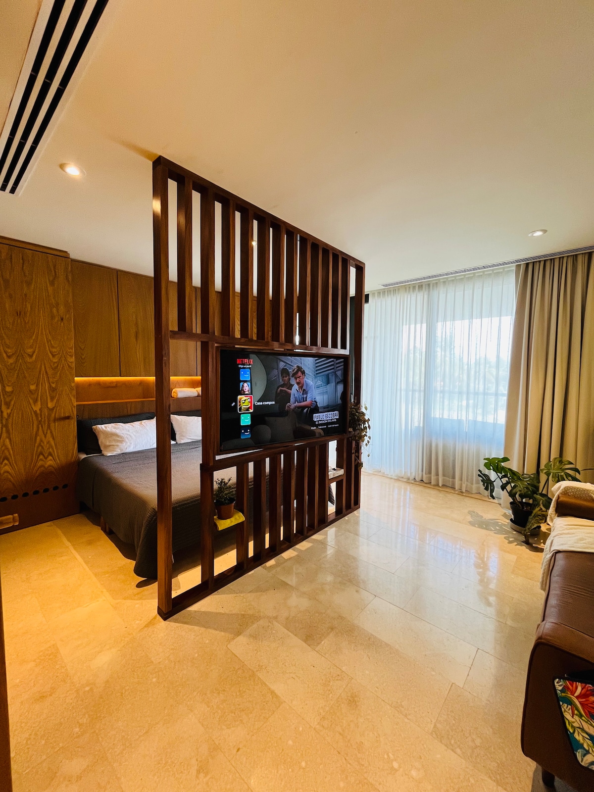 Bine ai venit la escapada ta de vis în inima orașului vibrant La Cruz de Huanacaxtle din Mexic (situat la distanță egală de Punta Mita și Puerto Vallarta) ! Amplasat la etajul al treilea al clădirii Amura, în cadrul fermecătoarei dezvoltări Alamar, acest studio uimitor în plan deschis este conceput pentru a vă captiva simțurile și pentru a vă oferi o experiență de vacanță de neuitat. Are bucătărie, spațiu de lucru pentru biroul de acasă, pat și canapea. Scaune confortabile pe balcon și opere de artă.