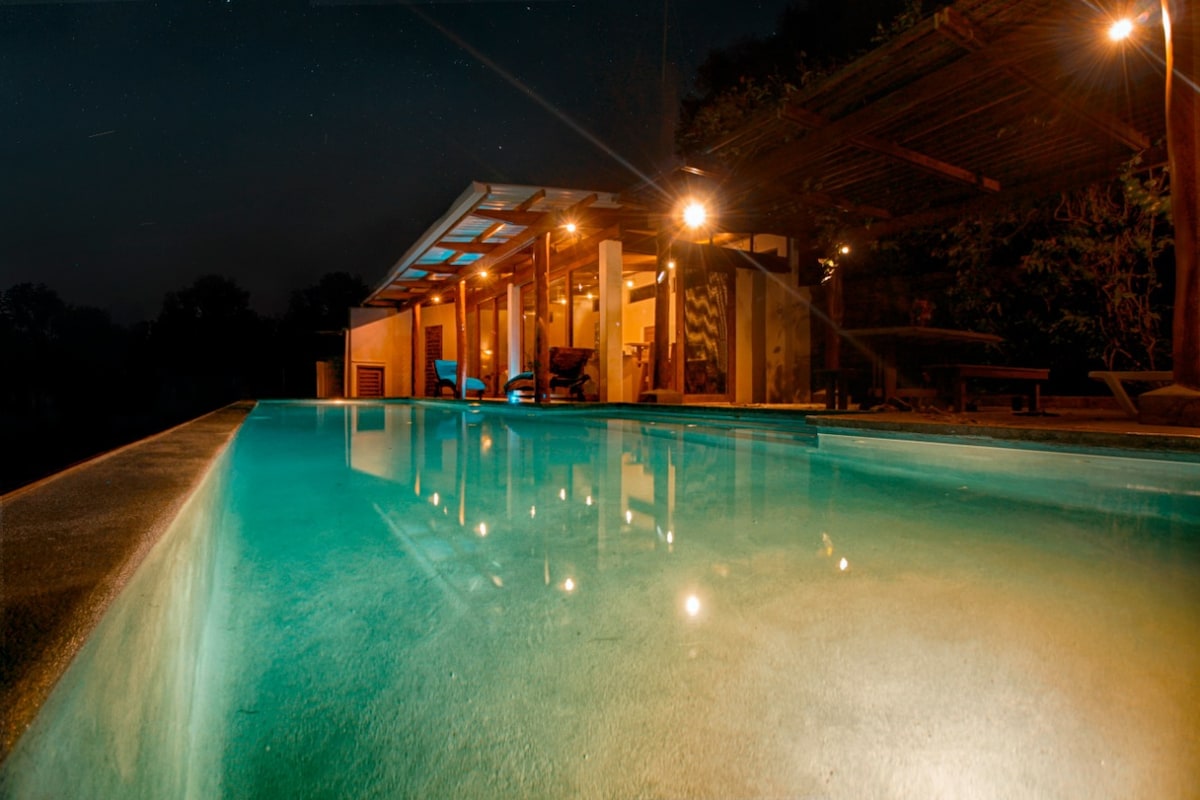 Casa Culebra: farmecul rustic întâlnește confortul modern în acest Airbnb cu un singur nivel, amplasat în Balcones de Majagual. Bucură-te de priveliști uluitoare ale oceanului și junglei din acest sanctuar privat în aer liber. Cu 2 dormitoare King, baie privată cu apă caldă solară și o bucătărie complet utilată, este perfect pentru o escapadă. Răcorește-te în piscina comună, recent renovată, la doar câțiva pași. Situat la 20 de minute de oraș și la câteva minute de plajă. Accesibil prin vehicule 4x4. Internet prin fibră optică de mare viteză de 200 Mbps disponibil!