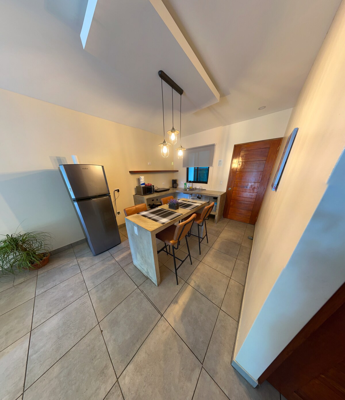 Apartamentul este situat pe strada principală din Playa Chiquita, cea mai liniștită și mai sigură zonă din Puerto Viejo, la câțiva metri de cea mai frumoasă plajă din Caraibe. Acesta este dotat cu: pat ✓ matrimonial ✓ AC ✓ echipat Bucătărie ✓ Fibră optică Wifi Parcare ✓ ✓ privată în interiorul proprietății. La câțiva metri vei găsi și restaurante, supermarketuri și închirieri de biciclete. Zona este bine conectată și la câteva minute cu mașina de centrul orașului, Punta Uva, Playa Cocles și Manzanillo.