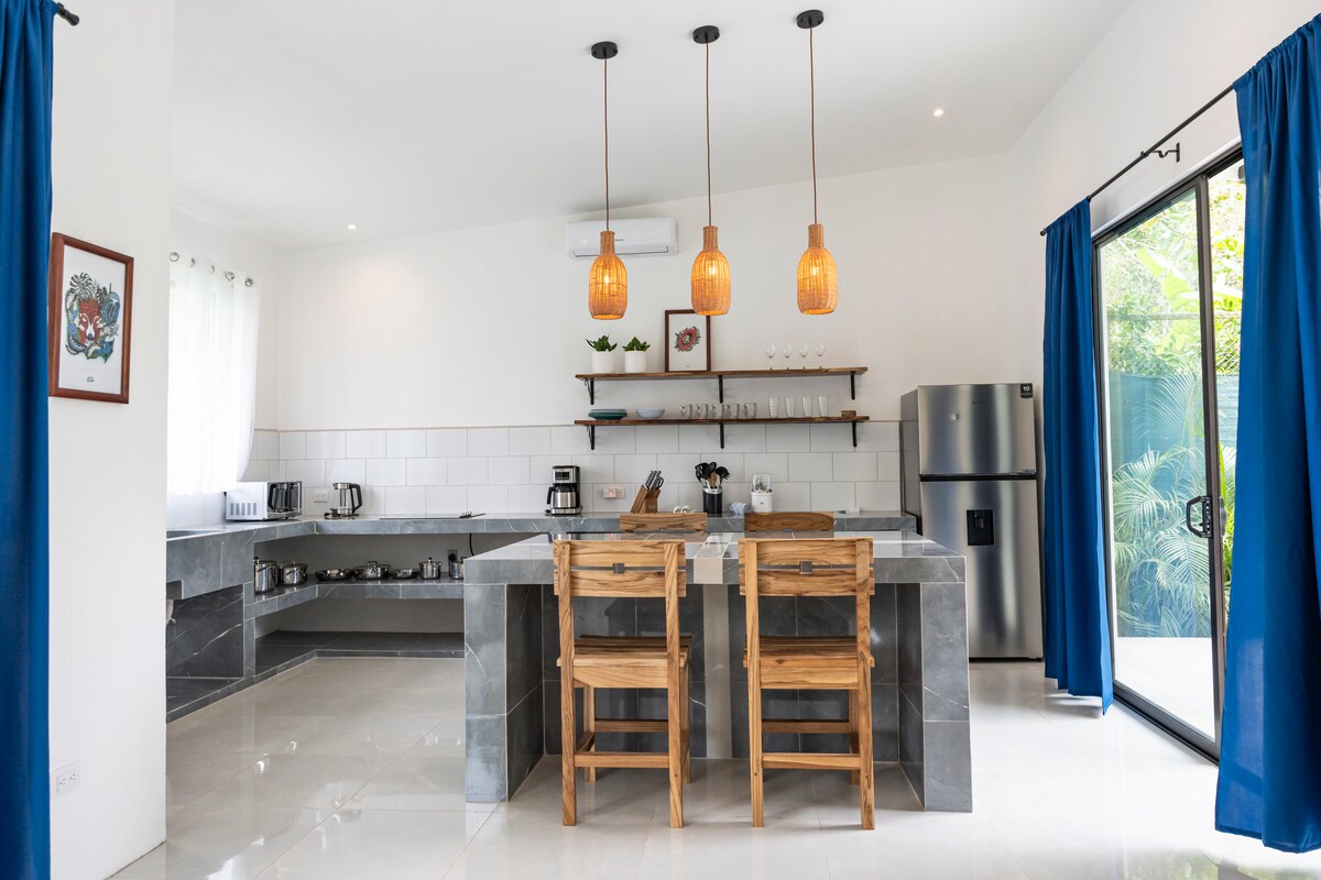 This open concept home is designed to celebrate the beauty of the Caribbean jungle. Casa Corazón del Mar is more than a place to stay—it’s a place to reconnect with what matters most. Nestled in the heart of the lush Caribbean jungle, Casa Corazón del Mar is a soulful sanctuary designed for rest, inspiration, and connection to nature. This hand-crafted hideaway combines artistic architecture with modern comfort, offering a one-of-a-kind escape just minutes from the beaches of the Caribbean Sea