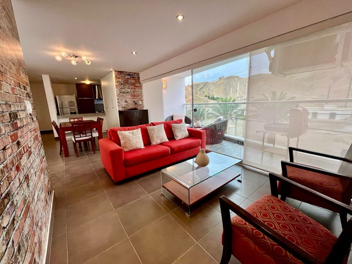 ¡Moderno depa familiar a una cuadra de la playa!