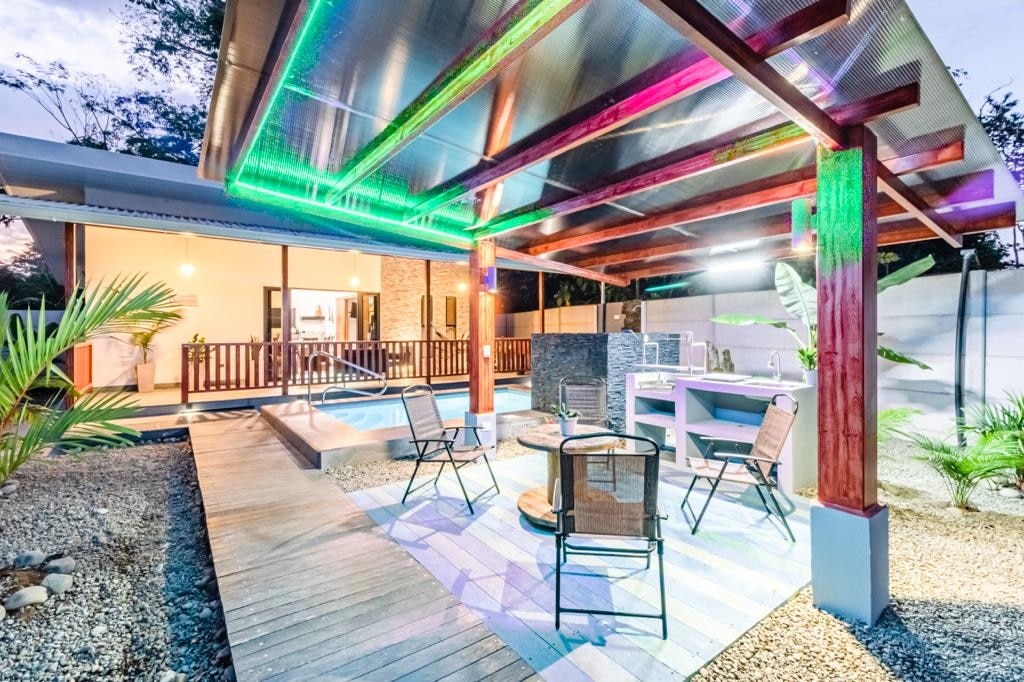 Bine ai venit la VILLA ARAGON — oaza ta tropicală privată din Playa Negra Heights, Puerto Viejo. Această proprietate frumos amenajată este amplasată într-o curte liniștită, închisă, înconjurată de grădini luxuriante și pomi fructiferi. Relaxează-te lângă propria piscină, bucură-te de sunetele naturii sau fă o plimbare liniștită pe traseul privat care duce direct la plajă. Situat ideal în apropiere de restaurante de top, cumpărături și viață de noapte, VA oferă combinația perfectă de confort și comoditate pentru o ședere relaxantă departe de casă.
