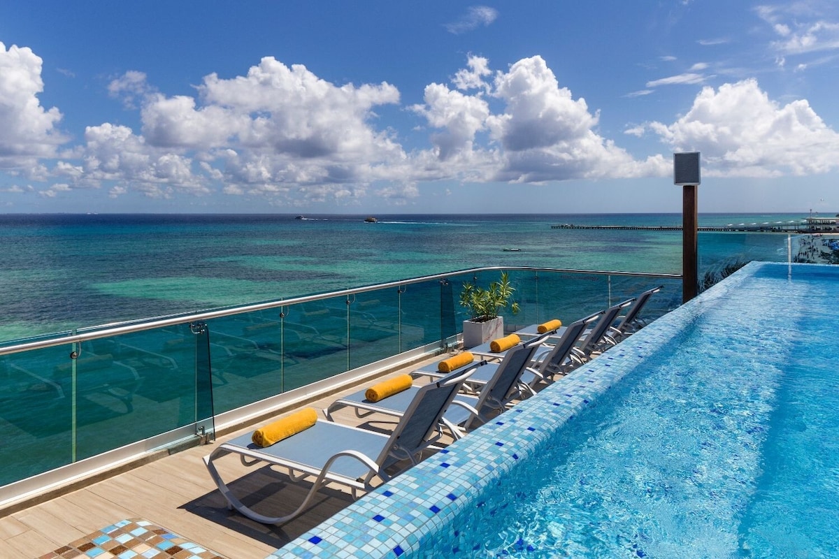 Suită principală cu vedere panoramică la Marea Caraibelor și acoperiș privat cu piscină mică, două lounge-uri, lounge și duș. Are un pat matrimonial, o canapea extensibilă și un balcon cu vedere la plajă, videoproiector cu aplicații de streaming și un sistem de sunet. Are o bucătărie modernă cu aragaz electric, frigider, prăjitor de pâine, cafetieră și ceainic, cu oferta de ceaiuri și cafele. Dotări incluse, cum ar fi Wi-Fi gratuit, prosoape de plajă, uscător de păr, uscător de păr, seif.