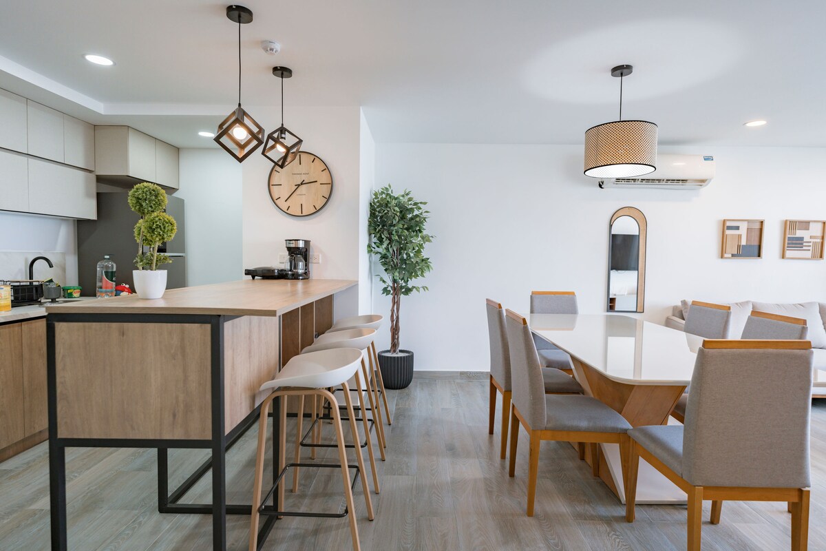Bucură-te de un spațiu de casă pe malul oceanului. Un loc elegant, spațios, capabil să găzduiască confortabil până la opt persoane la etajul 10 lângă mare, excelent pentru o zi frumoasă de familie, relaxare cu prietenii, împărțind ca un cuplu sau pur și simplu să scape de zgomotul orașului și să se retragă pentru a privi stelele 🌟 Protejează-ți întotdeauna starea de bine cu securitate non-stop în Garita ca pe plajă; în plus față de protejarea confidențialității cu liftul funcțional cu card de acces la podea.