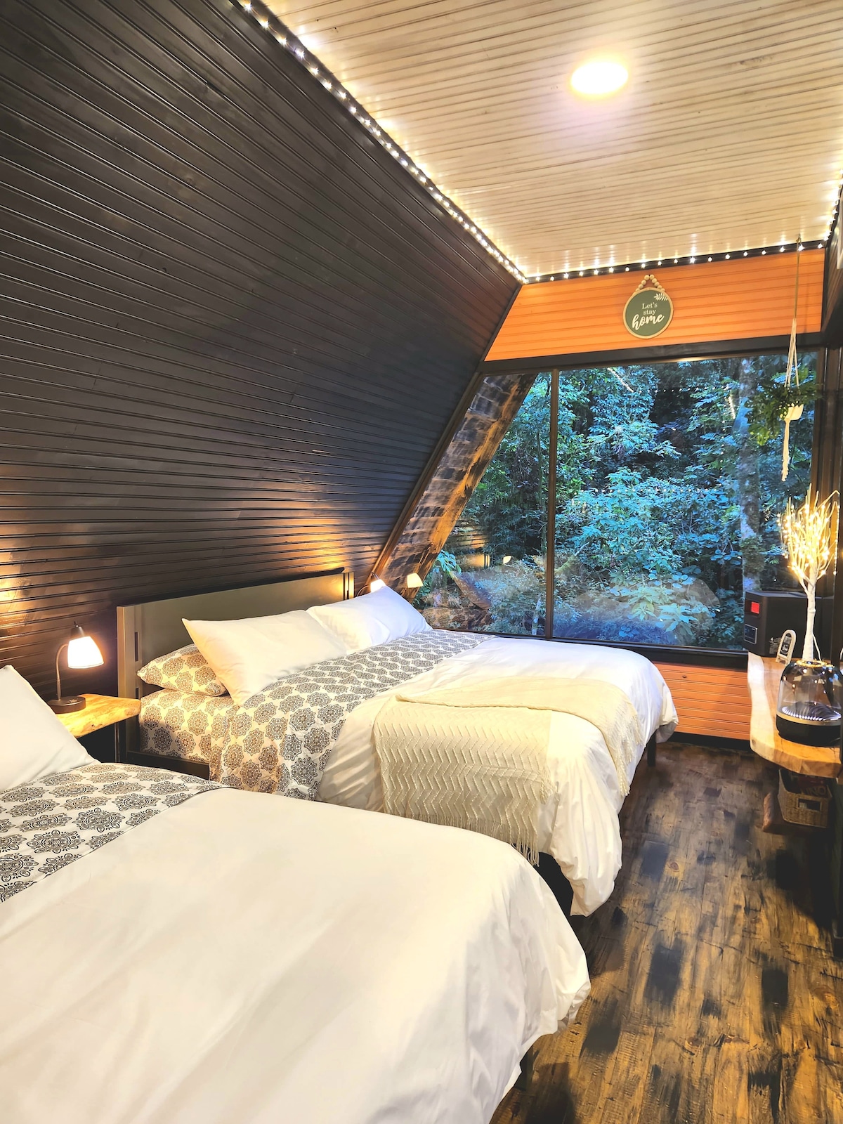 Amplasat de-a lungul malurilor imaculate ale râului Sevegre, Unicorn Chalet întruchipează luxul de cinci stele. Răsfață-te cu saltele Serta încălzite somptuoase, disponibile atât în dimensiuni King, cât și Queen, înconjurate de un decor elegant care emană căldură și sofisticare. Baia opulentă și bucătăria complet utilată îți îmbunătățesc șederea, în timp ce sistemul audio Harmon Kardon și iluminatul încântător creează o ambianță intimă. Acest refugiu rafinat promite o experiență de neegalat pe malul râului, unică în San Gerardo