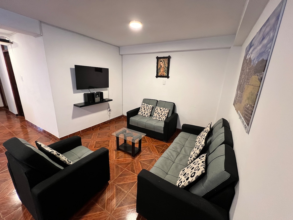 Apartamento Exclusivo en la ciudad del Cusco, ubicado en el barrio de Balconcillo a 15 minutos del centro de la ciudad y a 20 minutos desde el Aeropuerto en taxi. Cerca del Barrio de San Blas. Apartamento moderno y amplio con todas las comodidades Sala, Cocina, Comedor, 03 Habitaciones, 02 Baños, Lavanderia, completamente equipado con articulos de buena calidad; Vista Panorámica y hermoza de la Ciudad del Cusco; ideal para familias, grupo de amigos. Somos su mejor opción en el Cusco.