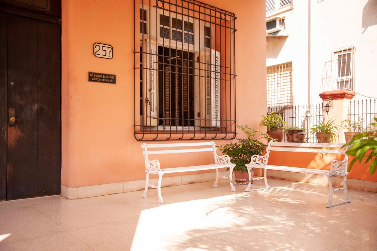 Spectacularly beautiful colonial-inspired residence with an elegance that channels the voice of the Habana from the 30s, that interprets personality in comfort and relaxation. Situated in the center of Vedado two streets from the Malecon and one street from the famous Calle Línea.