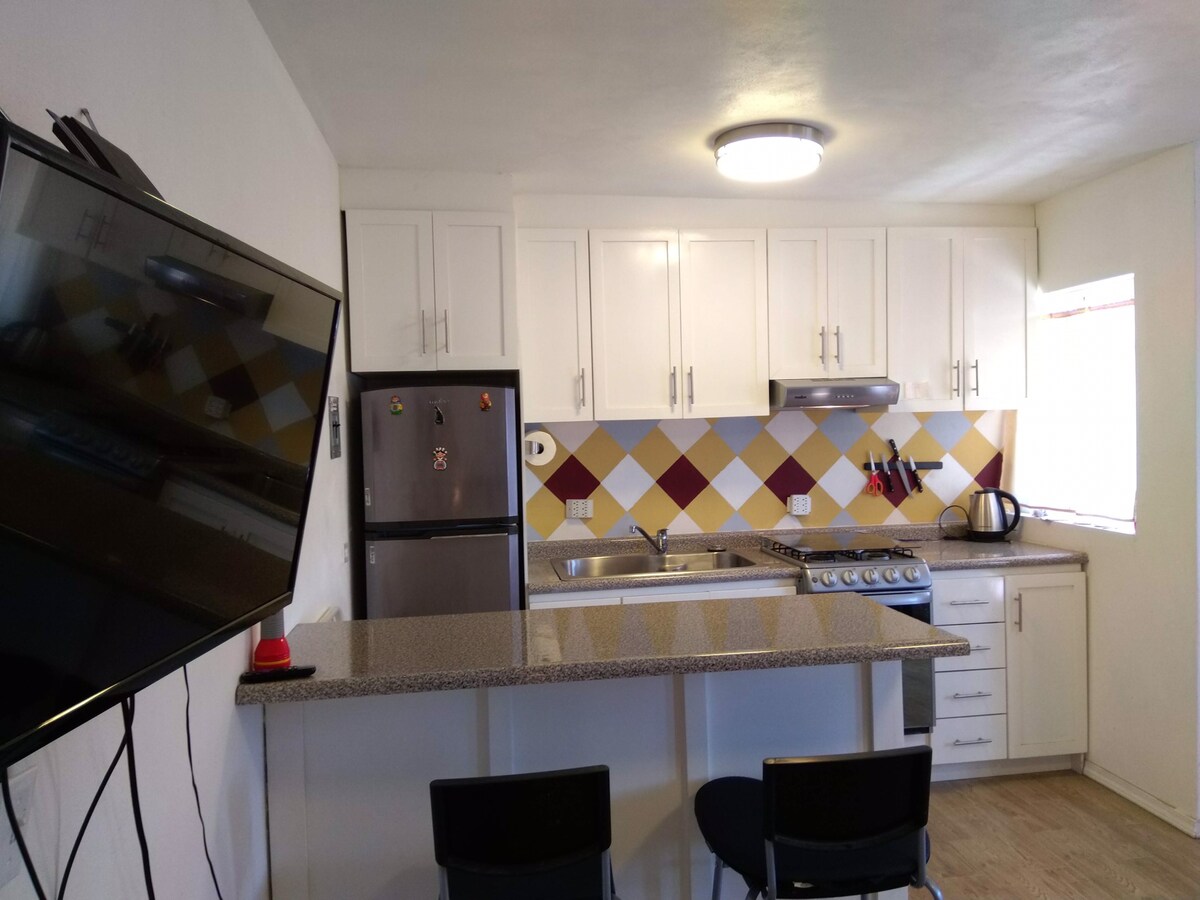 Loft elegant cu pereți din beton, grinzi de oțel și finisaje din lemn și o atmosferă botanică care pictează un stil proaspăt și industrial. În dormitor, bucură-te de o priveliște imensă a celei mai istorice străzi din Tijuana. Urcă pe acoperiș pentru a te bucura de un concert și de priveliști ale străzilor de lângă o groapă de foc. Securitate non-stop și acces numai pentru carduri. Experimentează cea mai centrală locație din Tijuana, unde clinicile, supermarketurile, barurile, restaurantele și cafenelele sunt la mai puțin de 5 minute de mers pe jos.