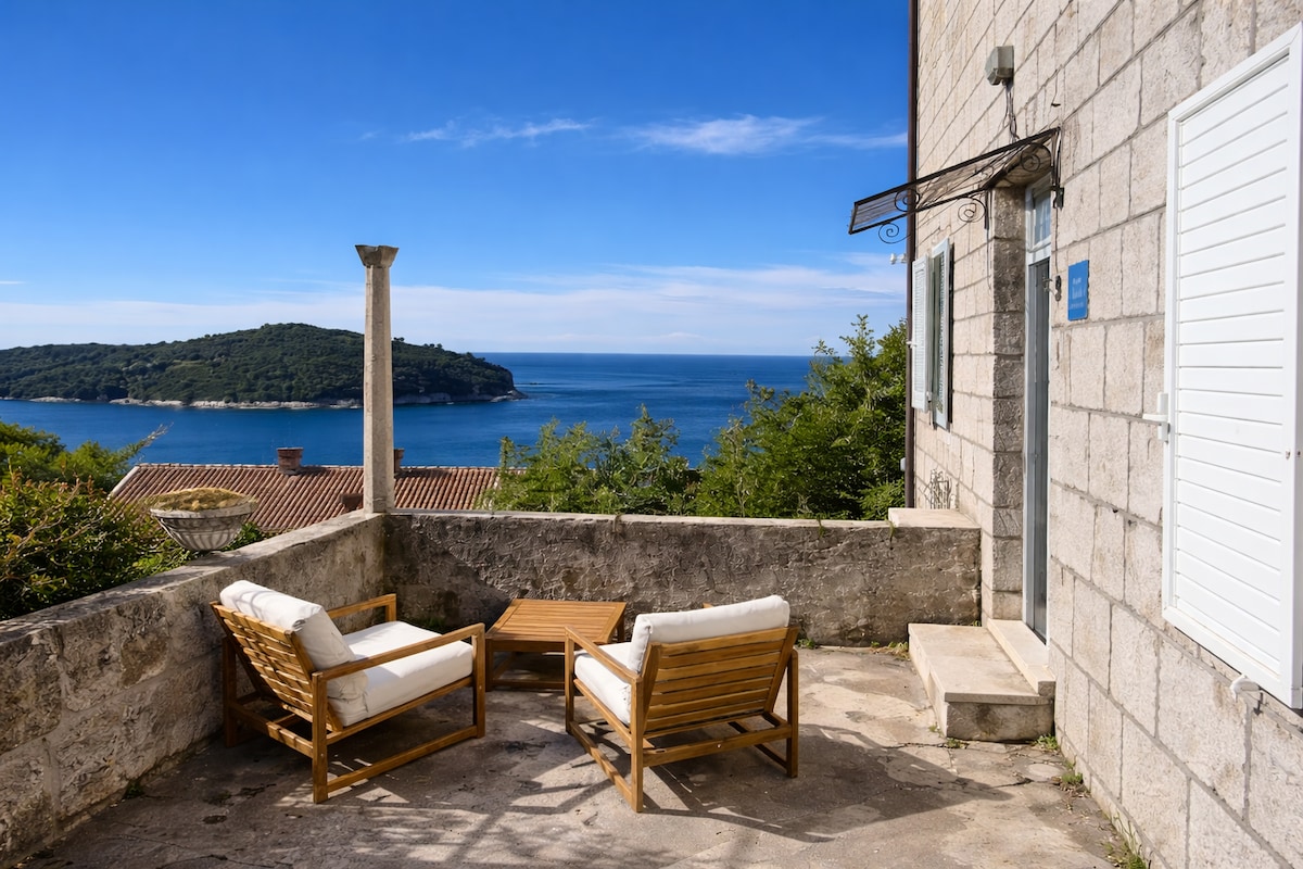 For tourists and Digital Nomads Friendly: For 2 guests and a child up to 12 years old. My internet speed in Dubrovnik is 50 mbits, maximum and enough to work at that address. Completely renovated 1 bedroom apartment for 2 guests in the old family house with a beautiful sea view, Old City and island of Lokrum. 3 minutes walk to the Old City, 5 to the cable car for Srđ hil and bus stop for Cavtat, 10 minutes for the Ploče Gate and the famous Banje beach. Public Car Park is near my house.