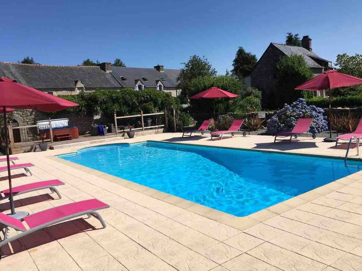 Notre gîte est entièrement rénové pour vous y accueillir avec un accès espace bien-être compris avec un jacuzzi pour 4 personnes. L'espace bien être vous est accessible et privatif, excepté le matin de votre départ, et ce afin de procéder à la vidange et nettoyage du spa. Chemins de grande randonnée, VTT, vallée verte. Wake West Park à 10mn, Village de Poul Fetan à 10 mn. Lorient et plages à 35 mn. Draps, serviettes et peignoirs de bain fournis.