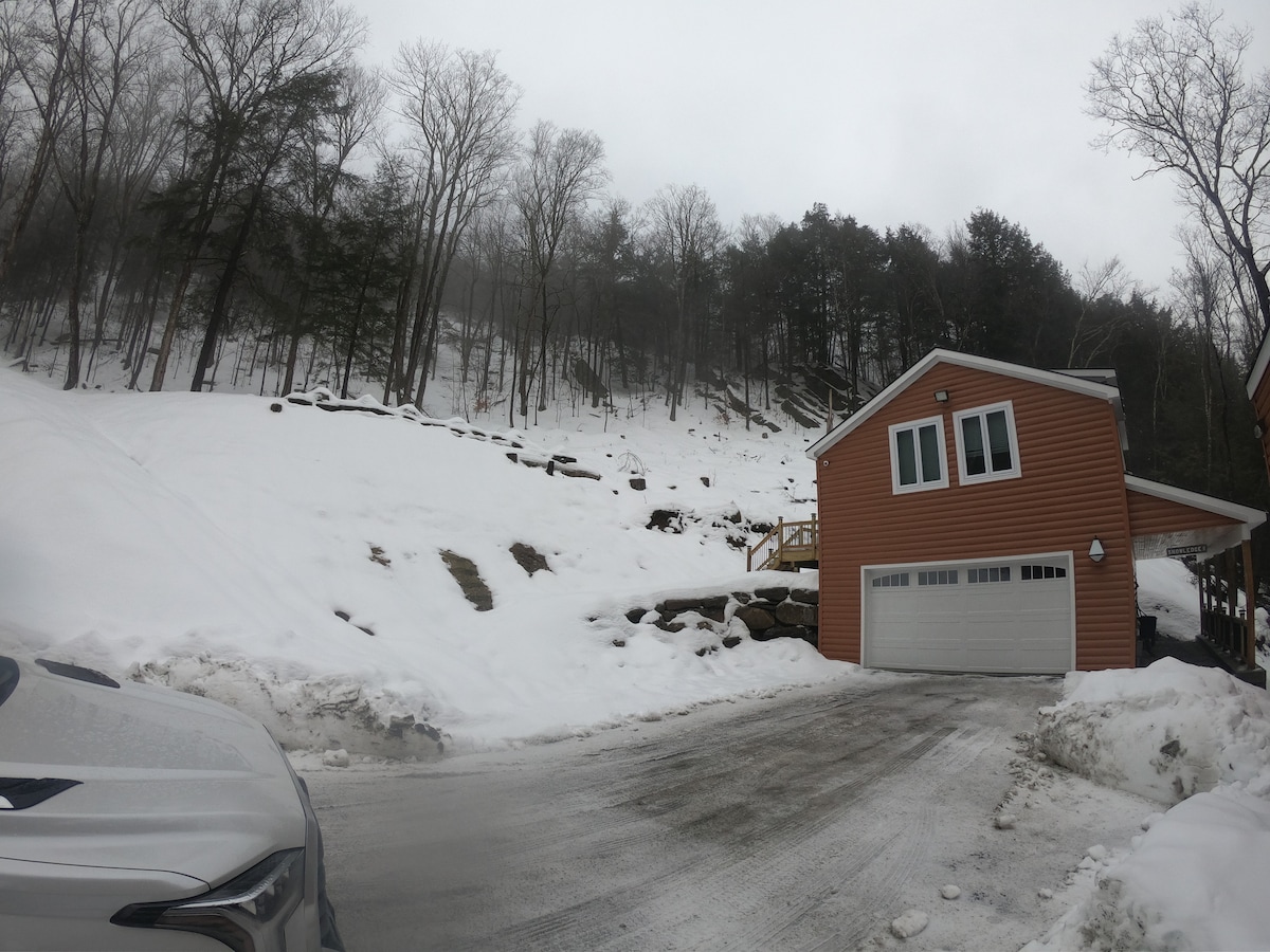 Unitatea Mogul este un apartament recent renovat, complet separat, la parter, cu 2 dormitoare/1 baie, situat în cabana noastră franceză pentru patru familii. Situat la 1,6 km de lacuri și tabere de vară și la 3,2 km de telecabina Skyship. La 15 minute de zona principală a stațiunii Killington și la 20 de minute de Okemo sau Woodstock. Dacă dorești să rezervi mai multe unități, consultă celelalte anunțuri ale noastre dând clic pe fotografia mea de profil de gazdă de mai jos. Unitățile din această locație se numesc „The Canyons Unit”, „The Ledges” și „The Glades”.