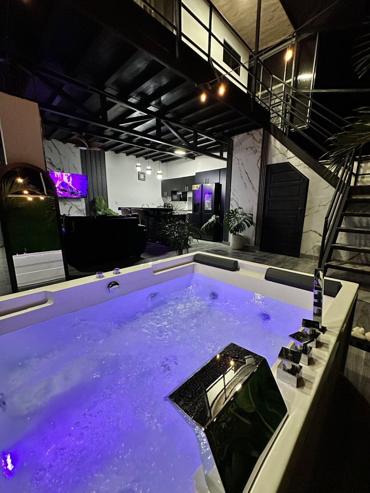 ♥️🥂🫧 Va fi o plăcere să găzduiești în: @apartamento_betandy Apartament echipat pentru 2 persoane. Poziție: La Rita, Guapiles. Apartament cu 2 etaje Etaj 1: Jacuzzi. Grădină Bucătărie echipată Baie/ Servicii Mașină de spălat Poartă electrică Parcare interioară Un loc sigur și privat. Etaj 2: Balcon Sofás Cameră cu un pat matrimonial Dulap Lămpi de lux Lumină cu 3 tonuri diferite Aer condiționat Serviciu/baie cu duș