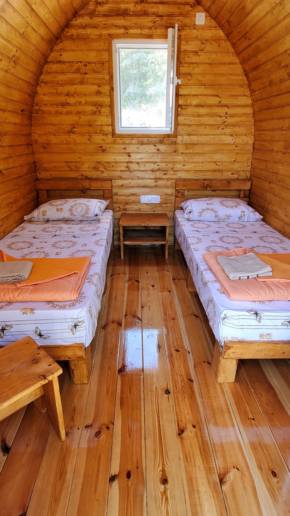 Bine ai venit la Cabana Nina, un refugiu confortabil din lemn situat în satul liniștit Balabani, la doar 6 km de Aeroportul Podgorica și la 5 km de frumosul lac Skadar. Această cabană fermecătoare are: O cameră confortabilă cu pat dublu O baie privată cu duș O terasă spațioasă unde te poți bucura de cafeaua de dimineață înconjurată de natură Perfect pentru cupluri sau călători singuri care caută un loc liniștit pentru a se relaxa și a se reîncărca, departe de aglomerația orașului. Oaspeții au, de asemenea, acces la parcare gratuită.