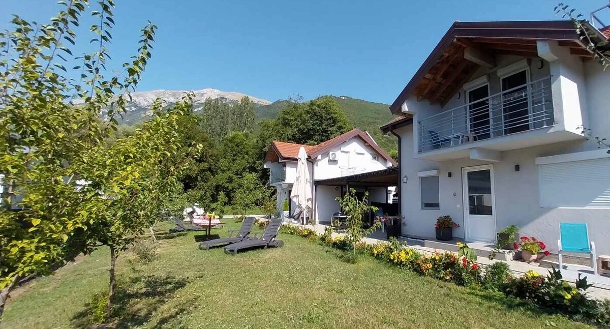 Situat în cel mai înalt punct al orașului Pestani (Ohrid), apartamentul tău (etajul al doilea) oferă o priveliște unică asupra lacului Ohrid și a muntelui Galicica. Înconjurat de verdeață și o abundență de natură, vă puteți bucura de una dintre cele 5 terase cu vedere la lac sau munte sau pur și simplu stați în grădina de lângă fântână și puteți asculta sunetul râului. În suita ta de lux ai 2 dormitoare, 1 living, o bucătărie cu echipament complet, baie, toaletă, terasă închisă cu foc p și grădină verde imensă.