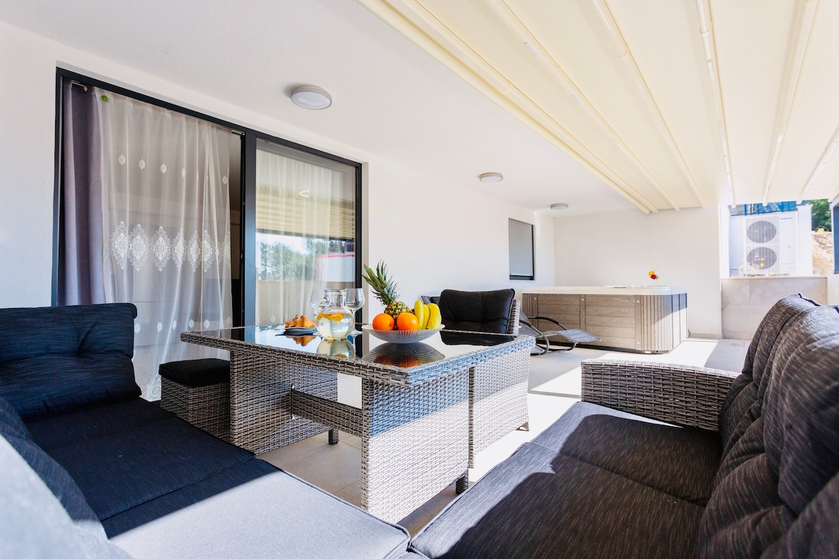 Apartament cu zonă privată de jacuzzi la -150 m de mare
