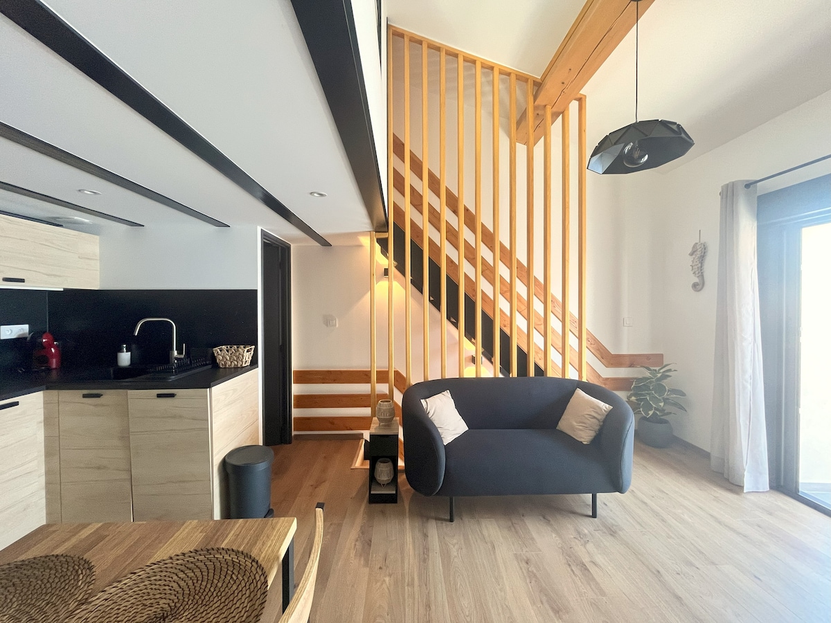 Cuplu gay Sètois- Extremeno închiriază un apartament adiacent casei cu un dormitor, living, bucătărie cu canapea extensibilă , decorată cu gust, plină de picioare, cu un mic exterior pentru a bea aperitiv în centrul orașului Sète și la 15 minute de mare. Fiind din Sète , te putem sfătui cu privire la restaurante, excursii, vizite și locuri puțin probabile. Ai opțiunea de a-ți parca în siguranță bicicletele pe terasă.