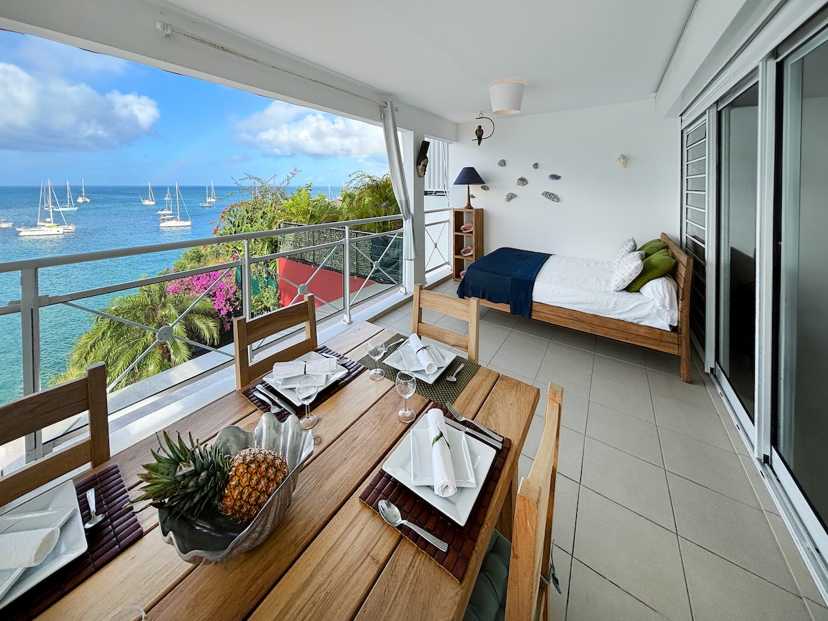 Apartament cu vedere la mare, în fața plajei, Trois Ilets