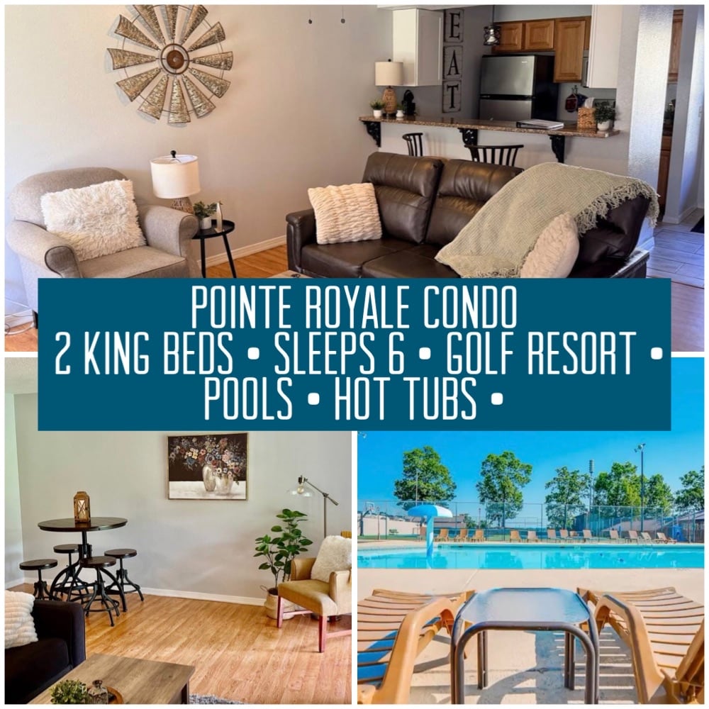 Pășește în confortul acestui apartament primitor 2 BR 2 Bath din satul de golf de lux Pointe Royale din Branson. Promite un refugiu relaxant cu vedere la terenul de golf la doar câteva minute de Lacul Table Rock, Silver Dollar City și Branson Theatre District. Joacă o partidă de golf pe frumosul teren de golf cu 18 găuri din Pointe. Specialitatea Stay n Play costă doar 60 $ * Bucătărie completă * Televizoare Smart * WI-FI de mare viteză * Mașină de spălat/uscător * Piscine, tenis, pickleball, golf, bar și grătar