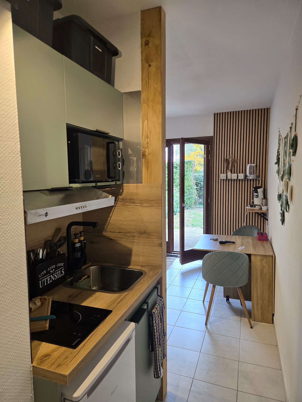 Uită de grijile tale în acest studio spațios și liniștit. Apartament situat la parterul casei noastre cu o suprafață de 42 m2 Terasă și parcare pentru una până la două mașini. Complet mobilat și utilat. Bucătărie cu cuptor, cuptor cu microunde, aragaz cu inducție și mașină de spălat vase Televizor inteligent cu Netflix În dormitor veți găsi un pat sigur de 160 x 200 cm. Baia este dotată cu mașină de spălat rufe. Este posibilă închirierea lunară, contactează-ne pentru a afla mai multe detalii.