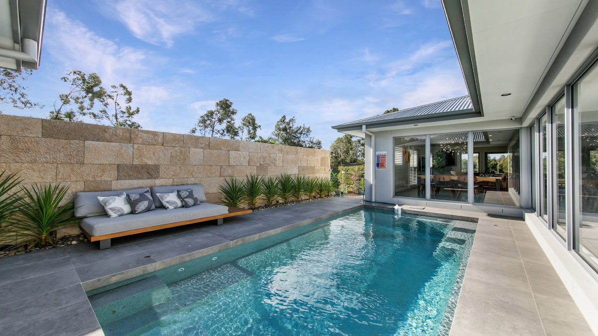 Ofertă specială de vară pentru 3 nopți (decembrie - aprilie) Rezervă vineri, sâmbătă și duminică și solicită o noapte gratuită (joi sau luni). Fațada terenului de golf, casă modernă spațioasă cu piscină privată încălzită cu gaz. 4 dormitoare mari (8 locuri de dormit), toate dotate cu baie, halate, potrivite pentru copii (pătuț), lenjerie de pat inclusă și prosoape de piscină. Living în plan deschis, cameră media, TV cu plasmă Foxtel, internet. Relaxează-te în zona de divertisment acoperită în aer liber, cu grătar, bucură-te de vinurile locale și produce la apusul soarelui. Garaj dublu încuiat.