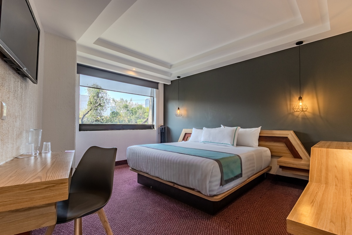 Acest spațiu elegant este fundalul perfect pentru șederea ta. Apartamentul privat are echipament complet: bucătărie echipată, ustensile, frigider, cuptor și aparat de cafea. Dormitorul cu o terasă privată și un pat matrimonial. Baia spațioasă și modernă este dotată cu tot ce ai nevoie pentru a-ți face șederea o plăcere. Spațiile comune cu terasă pe acoperiș cu vedere la Reforma Skyline te vor face să te simți în cea mai bună zonă urbană a orașului. Pază non-stop și spălătorie.
