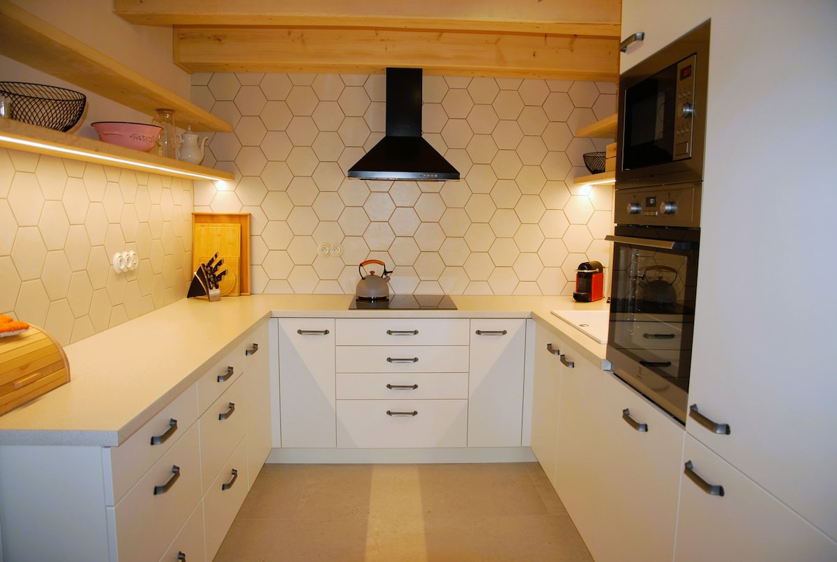 Tré este o cabană de designer unde ne concentrăm pe detalii și confort. Te poți relaxa în sauna panoramică privată cu lemne în aer liber. Tré este gata atât pentru gătit, cât și pentru curățenie. Desigur, există un espressor (cafea inclusă), un difuzor Bluetooth Bose sau paturi înalte de primăvară americane. Încălzire cu șemineu, încălzire prin pardoseală în baie. În apropierea casei este o parcare gratuită.
