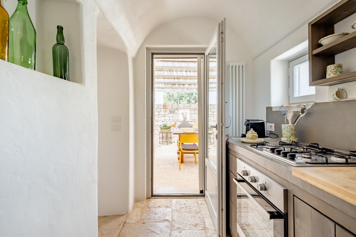 Trulli și natura se află într-un sat plăcut pe dealurile (245 m deasupra nivelului mării) din orașul Monopoli. Această casă tipică de la țară din sudul Pugliei este locul ideal pentru a-ți petrece vacanța în pace, la umbra stejarilor și măslinilor gigantici, înconjurată de o grădină bine îngrijită, cu flori și pomi fructiferi parfumați ( cireși, piersici, mere etc.). Trulli poate găzdui până la 4 persoane (2 în dormitor și 2 în living, pe o canapea extensibilă confortabilă.