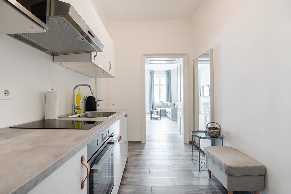 Bine ai venit în fermecătorul nostru apartament vechi din clădirea veche din districtul 16, aproape de piața plină de viață a fântânii și la numai 15 minute de centrul vechi al orașului! Acest apartament modern de la etajul 3 (fără lift) oferă confort elegant. Bucură-te de amestecul ideal de fler vienez tradițional și dotări contemporane. Perfect pentru exploratorii care doresc să experimenteze Viena autentică!
