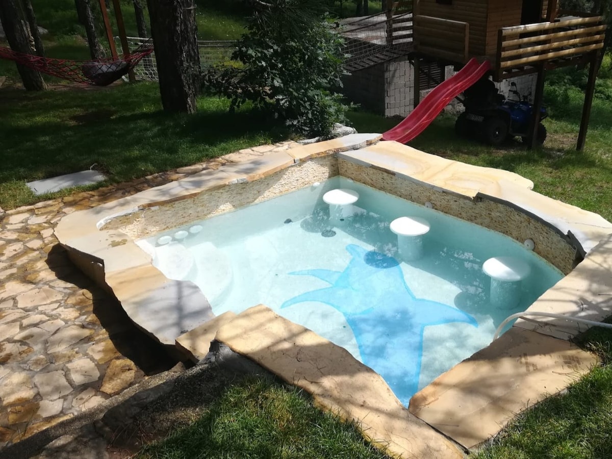 Escapadă perfectă - scapă de forfotă și simte-te imediat calm în cabana noastră confortabilă. Vei fi înconjurat de priveliști VERZI imense, vaci care pasc pe un câmp din apropiere, greieri bâzâind și păsări cântând. Uimitor pentru iubitorii de natură care caută un loc liniștit unde te poți relaxa într-o cadă cu hidromasaj, te poți simți confortabil lângă o groapă de foc, poți face drumeții sau ciclism montan toată ziua sau chiar poți călări pe dealurile minunate ale muntelui Tometino Polje/ Maljen.