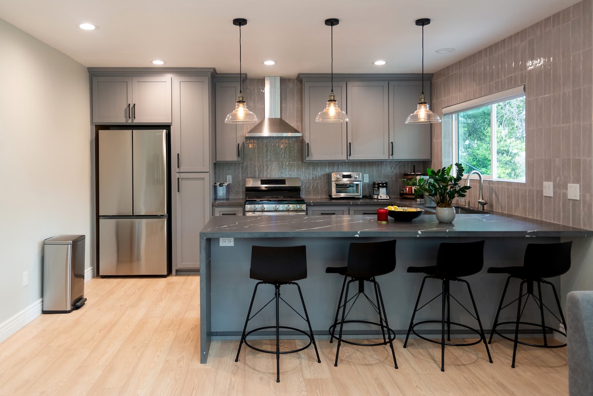 Private guesthouse with a newly renovated kitchen at the foot of the San Gabriel Mountains, minutes from Claremont Village, the Claremont Colleges, and Mt. Baldy hiking trails. Relax on the Mediterranean patio with morning coffee or an evening glass of wine, and unwind by the private pool. Ideal for Claremont Colleges visitors, hikers, and weekend getaways. High-speed WiFi and a dedicated workspace make it great for remote work too. Claremont Short Term Permit Number: STR-001