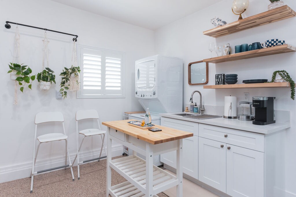 New construction 2 Bed 1 Bath Modern Hidden Gem! This Guesthouse has its own private yard, entrance & driveway. At just under 600sqft, No stone was left un-turned when Designing this space. This open concept Home features a living area with a Sleeper Sofa, 50" Roku TV, 4 chair dining table, A Remote controlled AC & Heat system. Full Kitchen with Microwave, Oven, Fridge & Washer/Dryer. Full Bathroom with Tub & Shower. 2 bedrooms, 1 with a queen bed & the other w 2 twin beds.