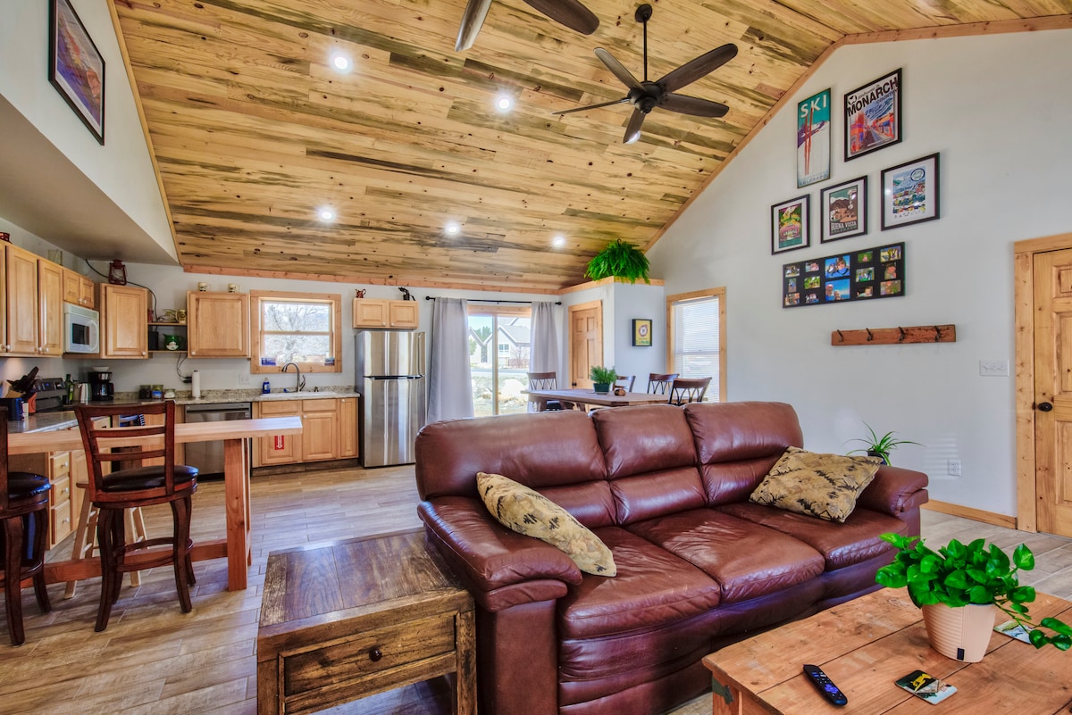 Vino să te relaxezi în casa noastră de vacanță nou construită, situată la intersecția Munților Stâncoși, în frumosul Poncha Springs! Locuința este situată central pentru aproape fiecare aventură pe care o oferă CO. Indiferent dacă cauți senzații tari sau ai nevoie doar de un loc unde să te relaxezi, vei găsi un remediu pentru setea ta de rătăcire la „Blue” Spruce Retreat din Poncha Springs! • ❄️ 20 de minute până la Muntele Monarch (baza ta de schi) • 🏙️ 8 minute până în centrul orașului Salida • 💦 25 de minute până la izvoarele termale de la Muntele Princeton