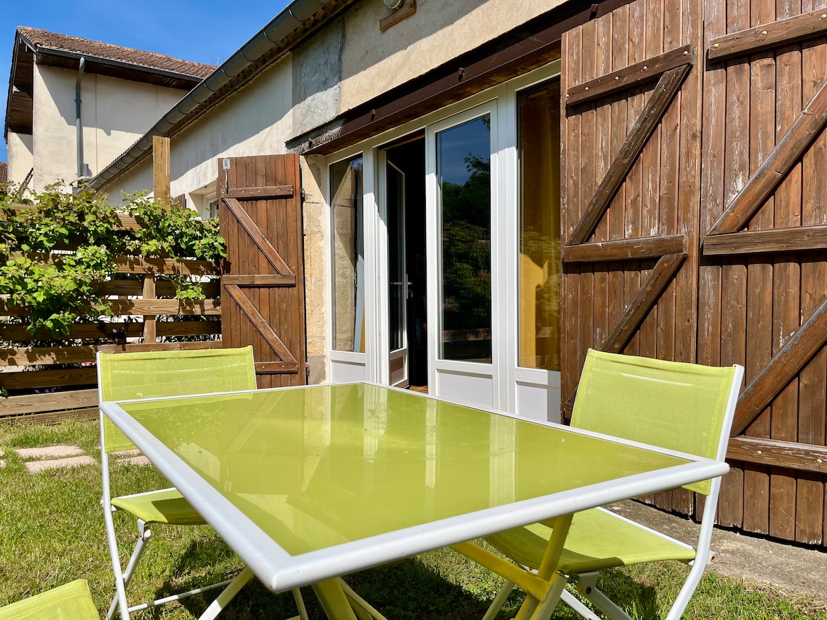 Venez vous ressourcer et vous retrouver seul ou en duo dans ce cocon de 80m2 entièrement rénové, situé au cœur du joli village ancien de Gensac en Gironde, avec une vue imprenable sur la vallée où vous pourrez admirer le soleil couchant. Vous serez conquis par son charme suranné, sa déco atypique et soignée et son confort incomparable. Un petit-déjeuner "à la française" vous est offert pour votre première nuit !