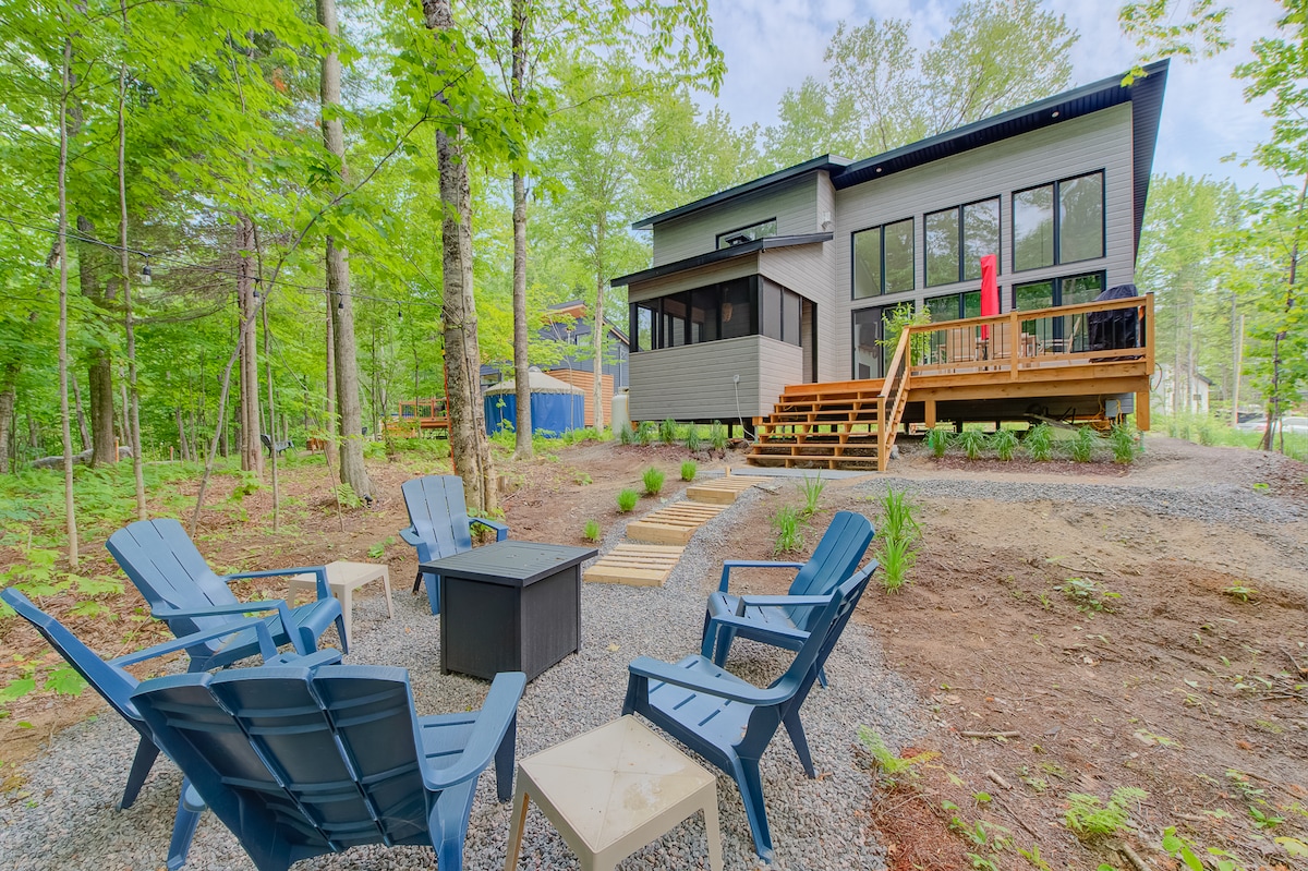 Bine ai venit în această cabană luminoasă, confortabilă și perfect echipată, ideală pentru relaxare și distracție cu familia sau prietenii. Vei găsi o piscină spa de 13 ft accesibilă pe tot parcursul anului, o sală de jocuri completă, șeminee interioare și exterioare, toate într-un mediu liniștit și intim, înconjurat de copaci. 🏡 Casă cu un singur etaj, convenabilă pentru familiile tinere 🔑 Check-in independent pentru o experiență simplă și flexibilă 📍Aproape de Vallée Bras-du-Nord și la 45 de minute de orașul Quebec