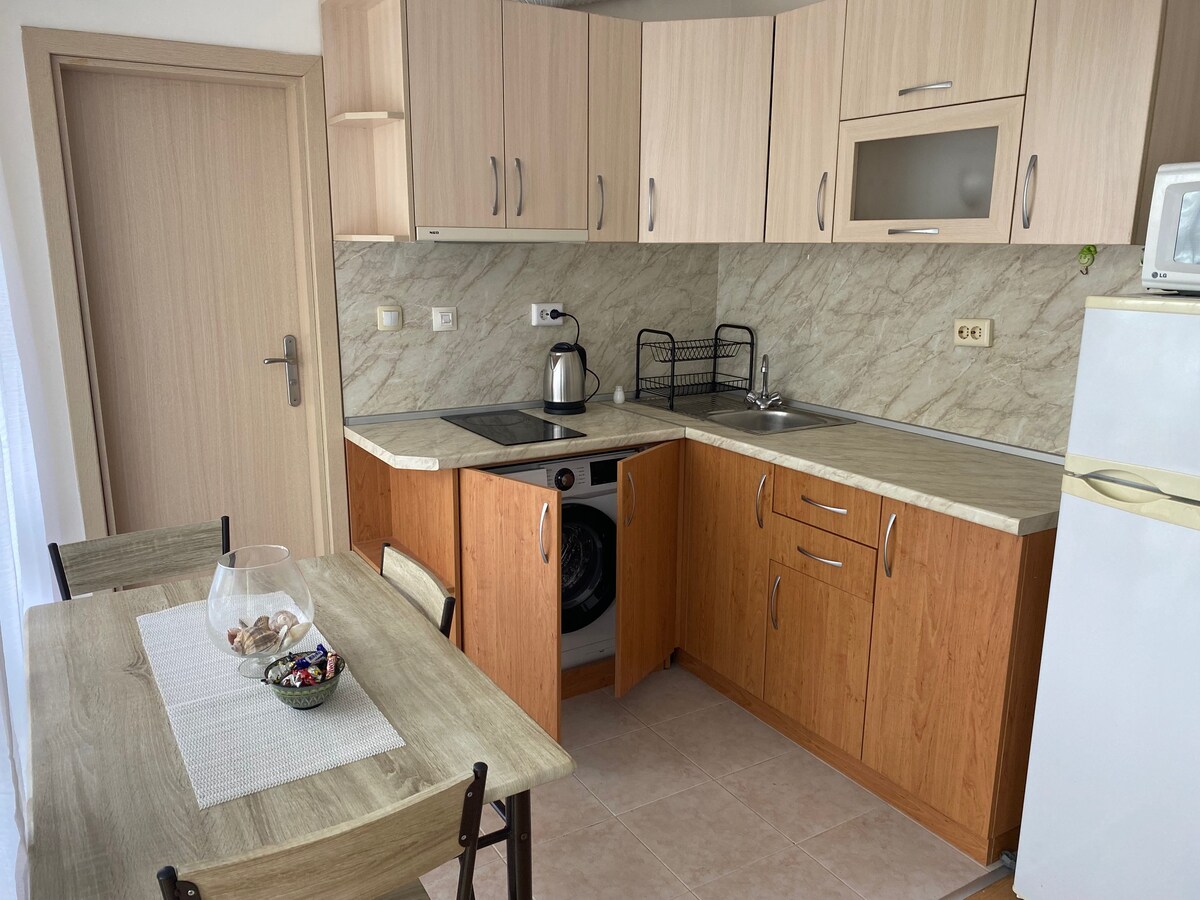 the apartment is located in the ideal center of Nessebar.In close proximity to everything needed 50 meters public transport 50 meters 100 meters pharmacy 50 meters grocery store 50 meters restaurants 200 meters from the entrance to the beach and one kilometer from the old Nessebar.The apartment has two separate bedrooms with double beds kitchen equipped with oven two hot plates extra hot water kettle large refrigerator with freezer dishes cups forks. if necessary mine and washing machin. welcome