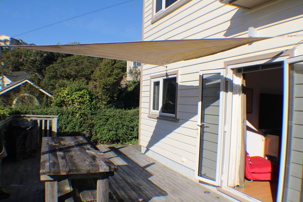 Bucură-te de vedere spectaculoasă la mare dintr-un apartament uimitor, de sine stătător, atașat la o locuință proiectată arhitectural. Urmărește bărcile cu pânze și apusurile de soare din salon, dormitor și terasa privată. Mic dejun continental delicios oferit. Privat, sigur, luxos și liniștit. Două minute de mers pe jos până la plajă. Plimbă-te de-a lungul plajei până la cafenele și restaurante. Wellington CBD la 25 de minute.