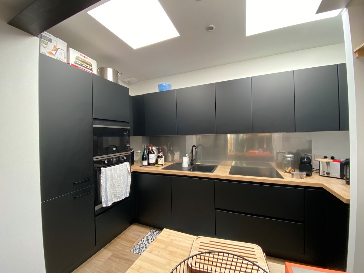Casa noastră este complet dotată cu aer condiționat și se află într-o fundătură liniștită din triunghiul de aur al Pornichet. La 5 minute de plajă pe jos și de restaurantele de pe plajă. 10 minute de mers pe jos de piața Pornichet. Avem 4 dormitoare. 3 băi. Un living mare cu bucătărie utilată și tot confortul pentru a pregăti mâncăruri bune. Vei aprecia grădina care nu este trecută cu vederea și terasa sa mare cu mobilier de grădină și plancha. Ideal pentru familie sau prieteni