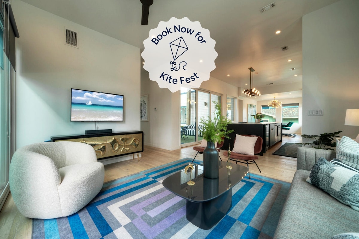 Piscină privată + curte pavată, mers pe jos până la plajă | Wave On Wave