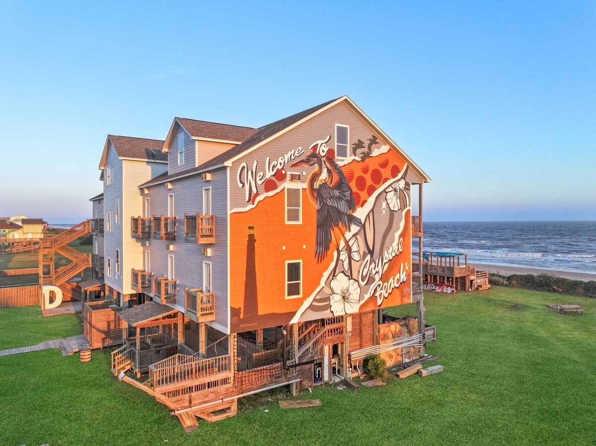 Welcome to "Mellow Mango" – Your Dream Beachfront Escape by Bolivar Vacations! This stunning 4-bedroom, 2-bathroom beachfront home offers the perfect blend of relaxation and fun for families and groups. Located just steps from the sand, you'll enjoy sweeping ocean views and an incredible outdoor entertainment space featuring a private swim spa, a tiki bar, and even a thrilling slide from the deck to the yard! It stands out as a premier choice among Bolivar Vacation Rentals.