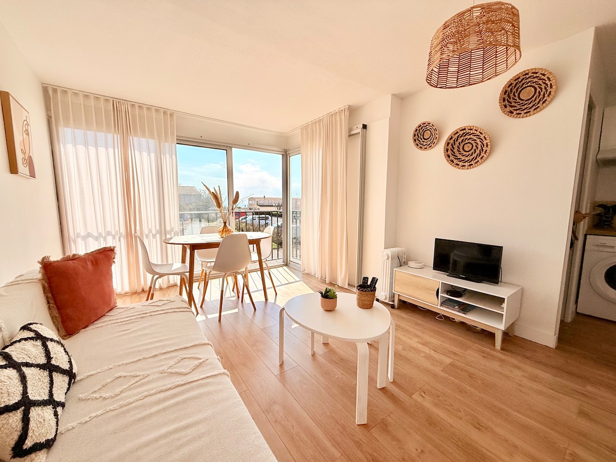 Închiriere 🗝️ pe noapte sau săptămânală 📍 Insula Pescarilor, Cap d 'Agde (34300) 📺 Apartament confortabil și utilat (Aer condiționat reversibil, Wi-Fi, smart TV, aparat de cafea, frigider-congelator, cuptor cu microunde, aragaz) 🛌 1 canapea extensibilă pentru 2 persoane 🧺 Lenjerie de pat furnizată 🌊 Loggia cu vedere la mare Reședință 🔐 sigură 🚗 Parcare gratuită în fața imobilului 50 🏪 de metri de magazine 🏖 La 500 de metri de plajă 800 🛥 de metri de port