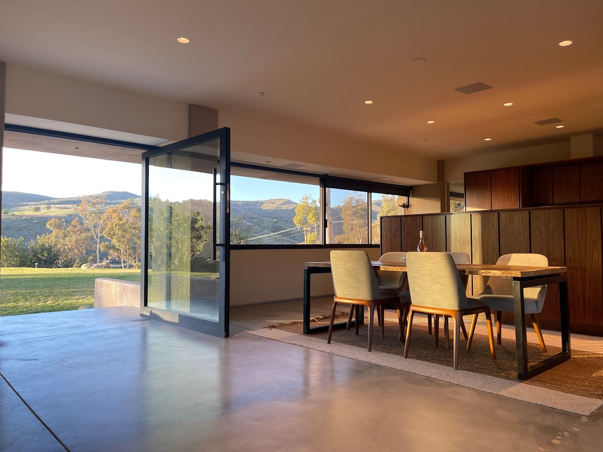 Casa noastră liniștită de pe plajă din 1927 a fost prima cabană de vânătoare cu vedere la Canionul Solstice, cunoscută atunci și acum pentru frumusețea sa spectaculoasă și fauna sălbatică. Savurează această felie cerească de Malibu istoric printre colibri, trasee de drumeții, eucalipt și ceață oceanică. Duș sub stele. 5 minute până la plajă, 7 minute până la Pepperdine, 10 minute până la magazinele și restaurantele din centrul orașului Malibu. Confort liniștit la o distanță izbitoare de tot ceea ce oferă LA. Energie solară + baterie+ ÎNCĂRCĂTOR electric. Wi-Fi prin fibră optică, Apple TV+.