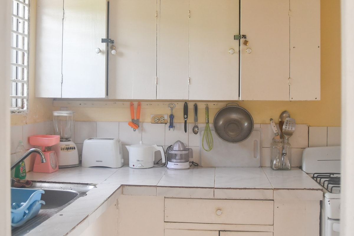 Ascunzătoarea ta confortabilă te așteaptă! Bucură-te de camera noastră liniștită, curată, ordonată, spațioasă și confortabilă. Bucură-te de o baie caldă și relaxează-te!! Învinge căldura! Camera este complet aer condiționat. Iubitori de natură, bun venit în frumoasa noastră grădină luxuriantă și în spațiul verde. Apropierea sa de dotările de bază și de Centrul nostru urban Morant Bay, recent deschis. Este aproape de plajă și la 30 de minute de mers cu mașina de fântâna Bath, unde te poți bucura de o baie fierbinte de la izvorul mineral. Simte-te la🏡!