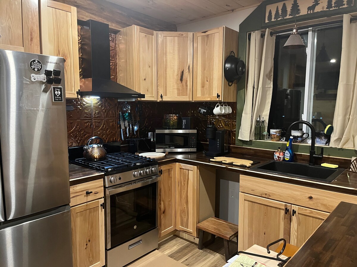 Bucură-te de natură cu stil în acest basm din pădure. Această evadare idilică combină structurile capricioase, spațiile de adunare îngrijite și un deal privat împădurit înconjurat de trasee de drumeții și orașe ciudate. Declinarea responsabilității: aceasta este o cabană rustică. Încălzirea este de la o sobă cu lemne, nu există aer condiționat. Casa de baie este o structură separată de cabană, pe un deal cu trepte de piatră. Gătitul se face prin grătare cu cărbune, chicinetă mică în aer liber sau foc.