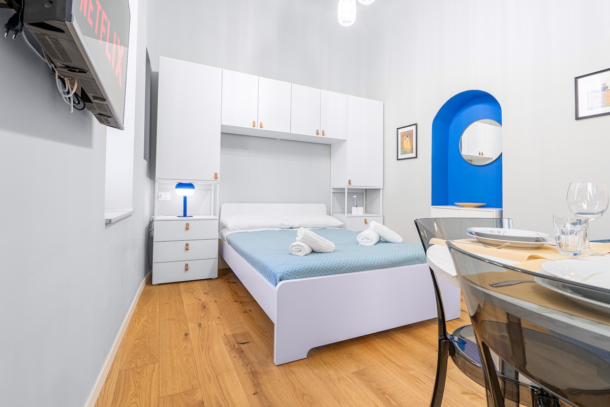 Bucură-te de o vacanță elegantă în acest spațiu privat, într-una dintre cele mai renumite zone din centrul orașului Genova. Apartamentul este o garsonieră spațioasă, cu o chicinetă și o baie privată cu duș. Proprietatea se află într-o clădire istorică de prestigiu, cu lift și situată în zona centrală, dar liniștită, liniștită și sigură. Posibilitatea de a alege între un pat dublu sau două paturi de o persoană separate (la cerere)
