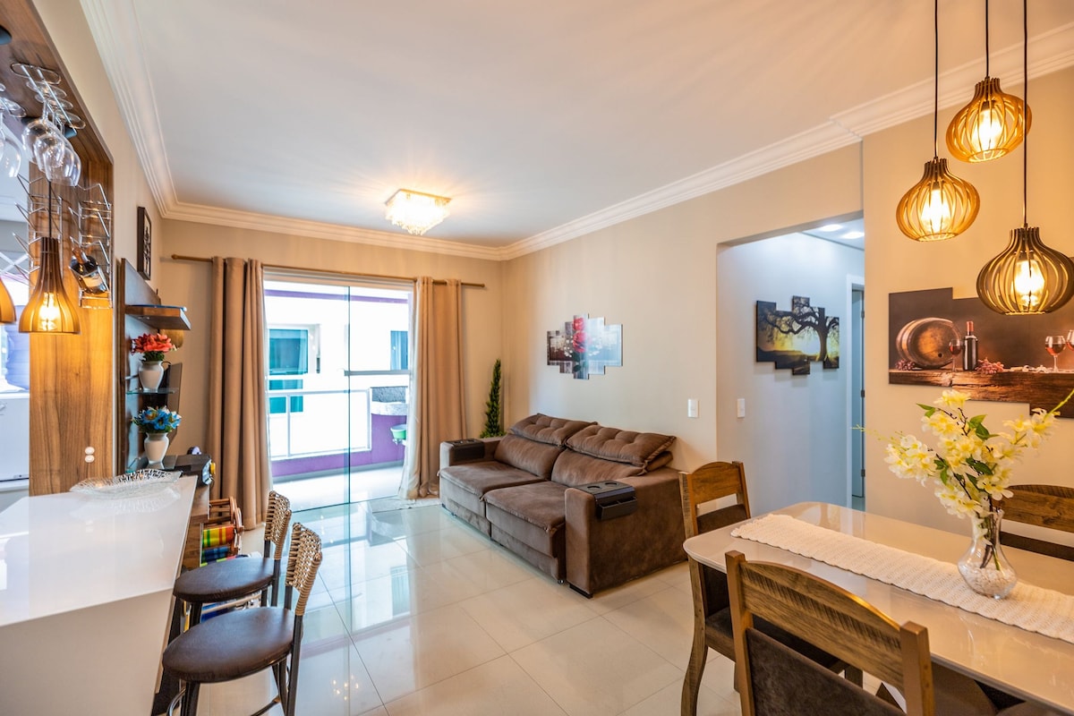 Bucură-te de zile relaxante în acest apartament nou și confortabil din Porto Belo, situat în apropiere de plajele uimitoare din Perequê, Bombas, Bombinhas, 4 Ilhas, Caixa D'Aço și Mariscal, cu acces facil la Meia Praia, Itapema și BR-101.