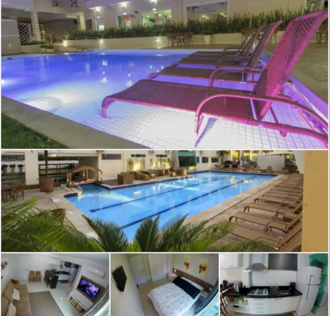 Apartamento bem comodo,ar no quarto e na sala ,tv no quartos e na sala,cozinha completa · Piscina Externa com raia olímpica; · Piscina Aquecida e Hidromassagem; · Piscina Infantil; · Deck Molhado; · Sauna Seca; · Brinquedoteca; · Sala de Fitness; · Sala de Jogos; · Sessão Cinema com pipoca; · Serviço de internet Wi-Fi; .TV a cabo; · Estacionamento; · Portaria 24 horas; ·