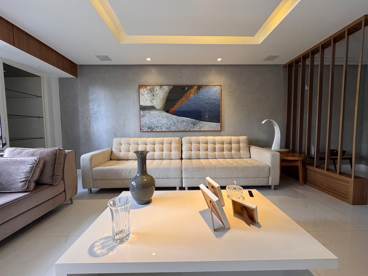 Acest apartament se remarcă prin luxul și rafinamentul său, situat în fermecătorul cartier Caminho das Árvores, în inima orașului și aproape de tot, la doar 100 m de Salvador Shopping și cu acces ușor la metrou. Oferă un mediu liniștit și sigur, ideal pentru cei care caută confort și caracter practic. Complet echipat cu aragaz, cafetieră, aparat de făcut sandvișuri și filtru de apă, precum și un loc de parcare inclus. Pot dormi până la 5 oaspeți, combinând confortul și exclusivitatea.